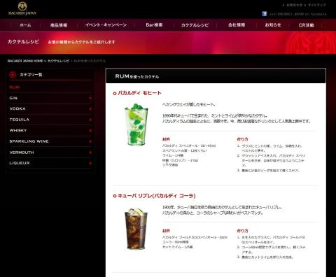 バカルディーのHPではサッポロではお勧めカクテルとしてモヒートを推しています