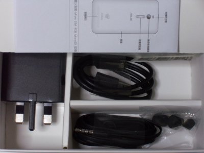 付属品はこんな感じです。マニュアルは読めそうで読めない、でも何となく意味は分かる言語で書かれています。USB充電器は日本では使えない形です。これ以外にEXPANSYSで購入するとオマケで安っぽい日本用2.1A対応充電器が付いてきました。