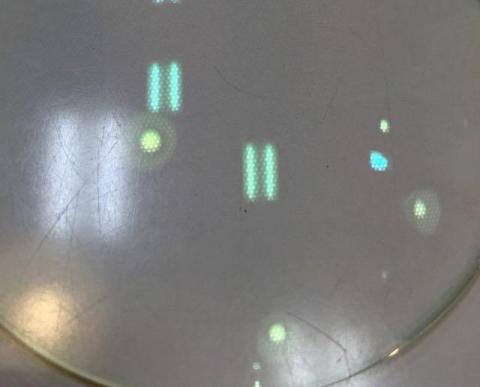 b.u.iレンズを拡大したところ。ハニカム模様の反射が見えます。