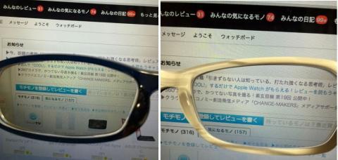 近年、過度のPC作業と加齢からくる老眼でなかなかメガネを選ぶのも難しくなってきました。筆者の場合、1日に8時間はPCに向かう為、眼をつぶると残像が残ったり、小さい文字が見にくい状態になっています。目薬なども試してみましたがドライアイ状態がひどく、目薬をさすと激痛が走るような状態です。なのでコンタクトは厳禁。先日ちょうどメガネを作る機会があり、大手のPC向け加工サービスのあるメーカーのものを作りましたが、どのような差があるのかeyeoneのメガネとの比較をしていきたいと思います。