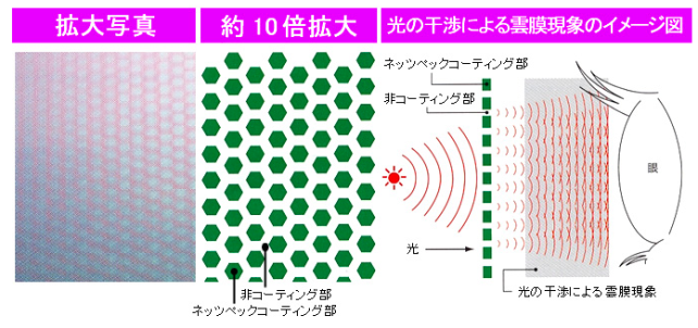 八角形の表面コートによる雲膜現象を利用して過剰な光を減衰させる加工処理です。