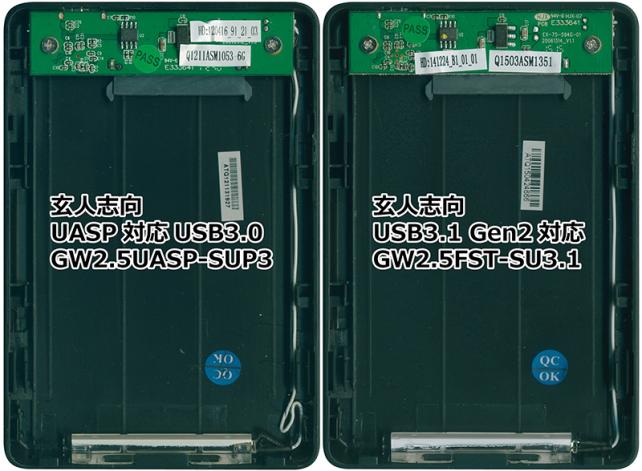 先ずUSB 3.1 Gen2対応のケースの外観ですが、以前購入した、玄人志向製UASP対応USB 3.0のケースと瓜二つ。どうも金型は共通のようです。
