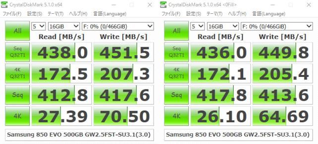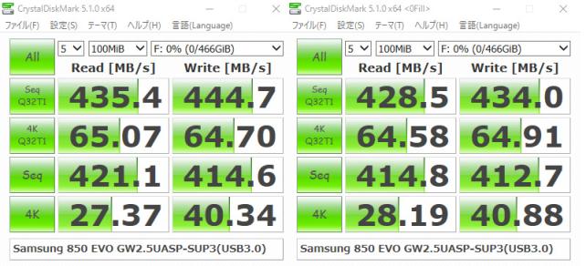 SATAポートに挿した時のスコアは、SAMSUNG 850 EVO 本体のレビューでご確認下さい。