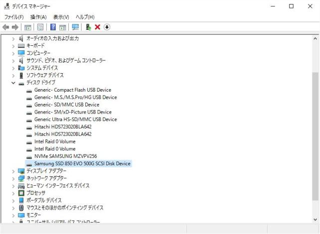 最後に、このケースを接続した状態で、デバイスマネージャーを見たところ、SCSI Deviceとして認識されていましたので、パッケージ等に記載はありませんが、USB 3.1 Gen2もパッケージには明記されていませんでしたがUASP対応になっているようです。