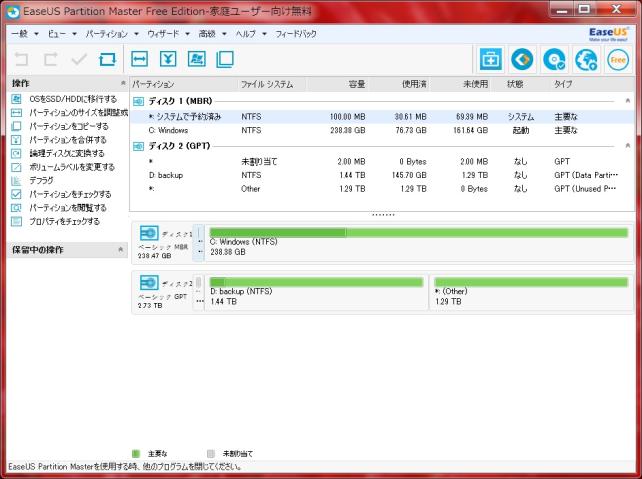 また、「EaseUS Partition Master Free」の利用は家庭内に限定されており、商用で利用するには上位の有償版の購入が必要です。
