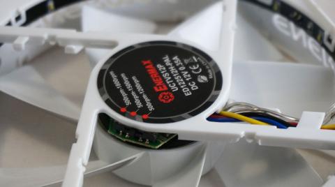まずこのファンはPWM制御。公証で500rpm~1800rpmという十分なレンジを持つ。PWM制御の場合光物としての明るさを損なわずに回転数を下げられるのでPWM制御付きというのは光物にも相性がいいのだ。案外光物かつPWMなファンって少ないのでありがたい。