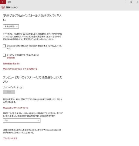 Build 10074を10130にしました。詳細オプションの下の方をFastにしてないとアップデートできなかったのでそれにしてやってみました。