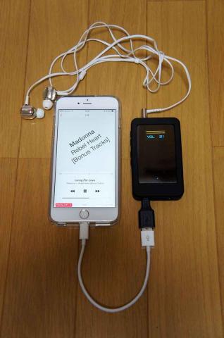iPhoneとポタアンを使う場合、やはりケーブルは短いほうが良いです。写真はわかりやすいように並べ置きましたが、iPhoneとポタアンを背中合わせにして、バンドで縛って使う場合でも、ケーブルは短いほうが良いです。第一、バッグの中に収納しても嵩張らないですからね。