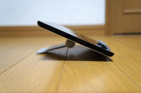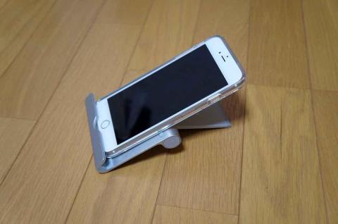 iPhone6 Plusなどの軽量のものなら、これぐらいの角度まで持ちこたえます。