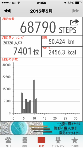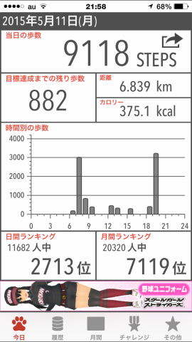 目標までの歩数がでるので、目標まで頑張ろうと欲も出てきそうです。