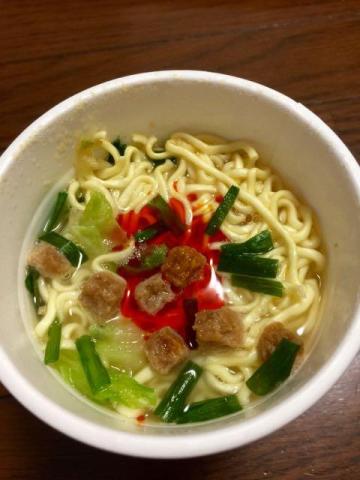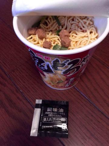スープはカップインで、後入れの辛味調味料のみ後入れ。