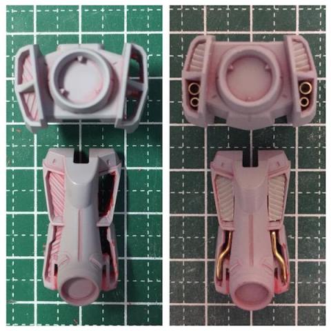 装甲にスラスターを表現したパーツを埋め込んでいきます。