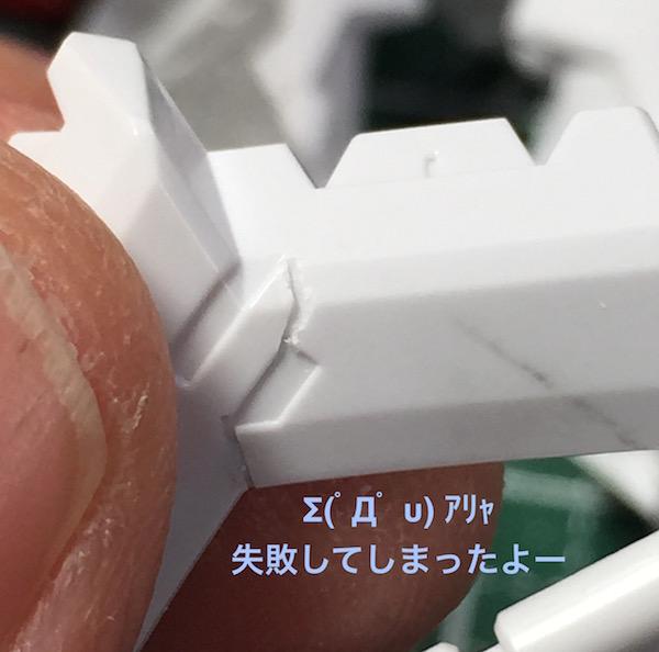 膝のパーツです。ノコギリでスリットを入れてヤスリで慣らしパーツを追加