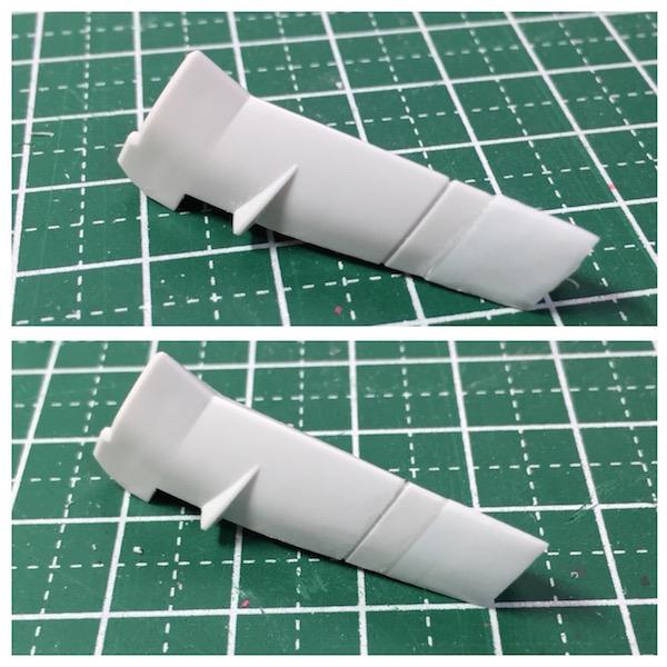 上部の写真は、リューターにてザックリ削った状態で、下部の写真はヤスリで仕上げた状態。継ぎ目の段差は後々修正します。