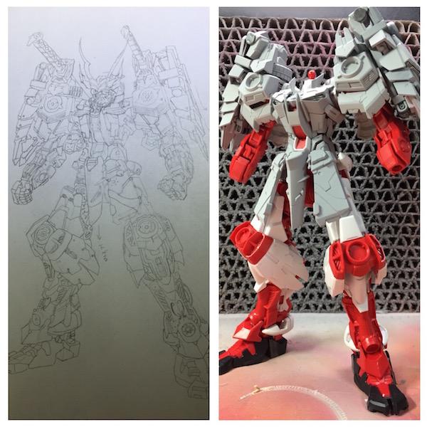 現行のイメージは剣豪といった感じです。なので、3機で1個小隊を編成するビルドファイターズトライ(TVアニメ)に登場したと仮定した場合、チームリーダ的な印象を与えられるような作品を目指したいと思います。