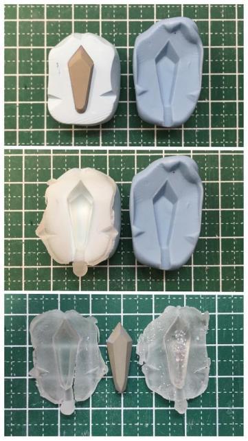 背面には大きなグリーンのクリアーパーツを自作しました。ぱっと見気泡が入っているように見えるのですが、実はラメ粉が入っています。