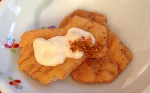 それから、たまたま「タルタルソース」と「一味」があったので付けて食べてみました。