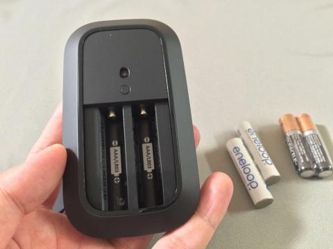 乾電池が2本同梱されていますがeneloopを用意しました。乾電池だと約6ヶ月もつそうです。