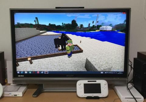 で試してみたのはマインクラフト。42インチの大画面で遊ぶマイクラも楽しいですね。通信距離は数mはなれてましたが問題なく動作。