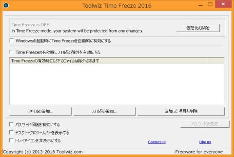 Toolwiz Time Freeze 2016ですが、正式名としてはToolwiz Time Freeze です。