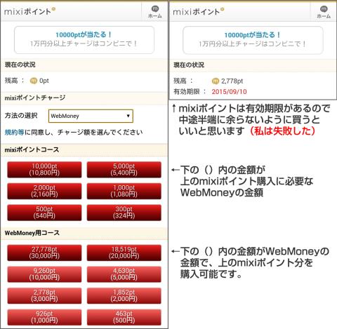 私は思いっきり、3,000ptを買おうとして、3,000円分のWebMoney課金してしまって見事に中途半端なことになってしまったので・・・、皆さまは「mixiポイントコース」を利用して、切りよいポイントで課金ライフをお楽しみください。