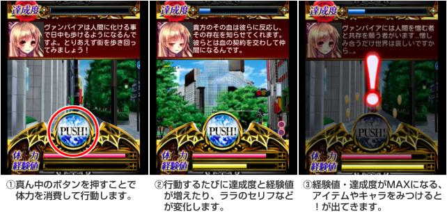 まずはチュートリアルを通じて、「ヴァンパイア†ブラッド」のゲームの説明をうけます。