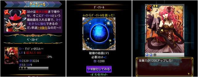 覚醒したカードを強くするためには、他のカードを合成して経験値をえることで、カードのレベルを上げることが可能です。その他にダークシール強化という方法で、カードの強化が可能です。