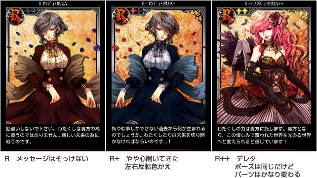 オススメは柊 刹那ちゃんでしたが、個人的なビジュアルの好みから「アンジュ・ロリス」さんを選択、特別にってことでいきなりR+に進化してくれます。