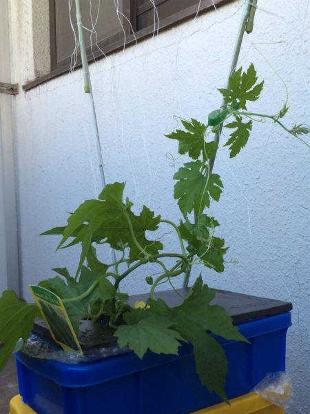 手動給水中:6時、12時、18時に各約1リットルの培養液(ハイポネックス野菜用1000倍)