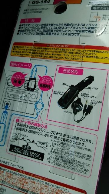 今までカセットタイプのもので聞いていましたが断線しているようで音がたまにとぎれるので、FMトランスミッターを探していました。軽自動車の純正2スピーカーで聞くので音質より安定性のあるものがいいなあ~と。安くなっていて1000円で買えたので試しに買ってみました。