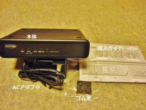 内容物です、本体とACアダプタとゴム足と導入ガイドの4点です。