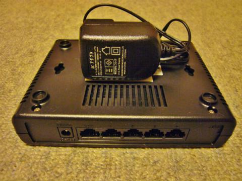本体下側には吸気用のスリットと壁掛け用の穴が、SSIDとかはACアダプタで隠していますが、ACアダプタは5V1Aでした。