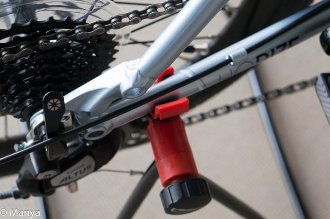 受けの形はU字に返しがついていて、Oリングを引っかけるとチェーンステーにロックできるためより安全に作業ができる。