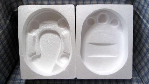 箱を開けると取扱説明書が上面に置かれていて、本体は発泡スチロールの緩衝材でサンドして固定されていました。