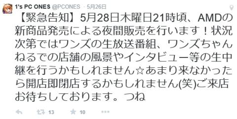 正直、発売日前日まで存在すら忘れていたのですが、日本橋のPCショップであるPCワンズのTwitterで夜間販売の告知が・・・