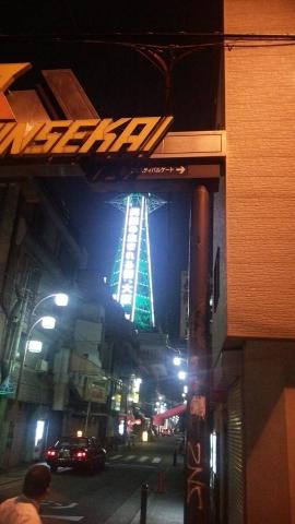行きとはコースを変えて、夜の通天閣や新世界の前を通って帰りました。