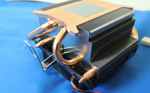 付属するファンこそ6㎝だが、ヒートパイプによってヒートシンク全体へ熱を伝える構造となっており、接触面にアルミ銅を採用している。
