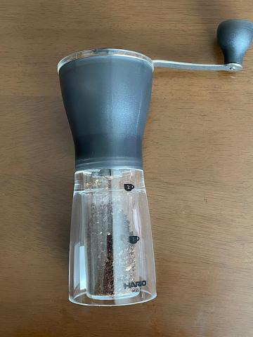 コーヒーミルも今回はハリオのモノを探しメルカリで未使用品として出品されていたモノを購入しました。