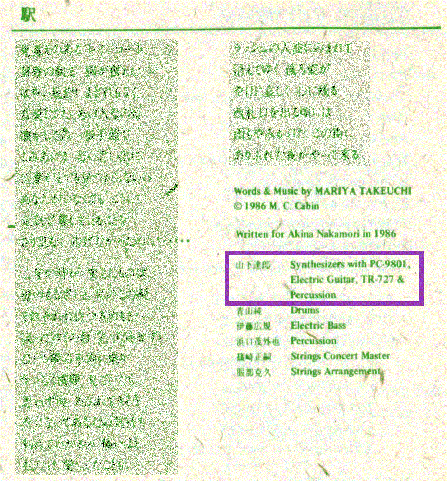 PC-9801使用でのシンセサイザー演奏だったようです(紫枠)旦那の山下達郎が担当です
