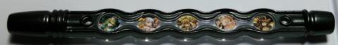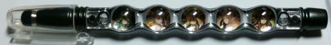 ペン軸の片側に透明アクリルをはめて、反対側にシールを挟んでさらに透明アクリルをはめ込みます。
