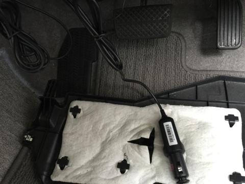 電源コードを運転席の足元まで隠すことができました。
