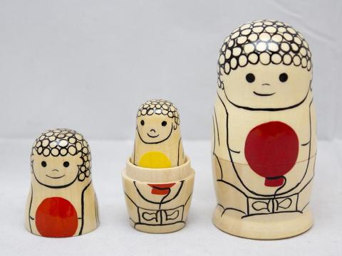 運動会の振り替え休日に急きょ行く事になった鎌倉日帰り旅行で、買ってきたガイドブックを熟読しこれが欲しいと息子がゆずらなかったマトリョーシカです。