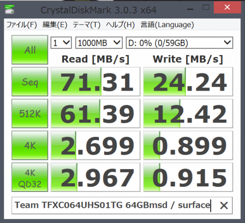 で、SurfacePro2の内蔵カードリーダー(内部USB3.0接続)でとったベンチがこちら。