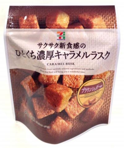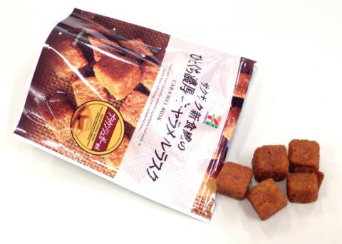 「新食感!」と評判のセブンプレミアム サクサク新食感のひとくち濃厚キャラメルラスク です。