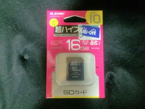 某所のHARD OFFで新品ながら300円(税別)で販売されている16GBのSDHCメモリーカードです。スピードクラス表記はClass10 UHS-1対応となっていて、パッケージ裏の説明では詠み出し速度で最大40MB/s以上となっています。