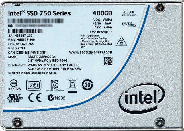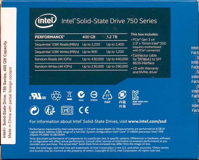 このSSDは、インテル 750Series NVMe PCIe 3.0x4仕様の2.5inch SSDです。