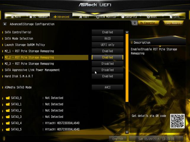 AsRock U.2 Kitを接続して、ASUSTeK同様 UEFI BIOSで設定します。