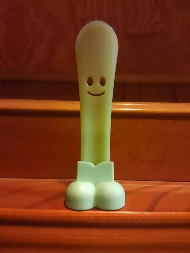 自立するよう、脚を持った靴べらの、広くなったところに顔が書いてある。