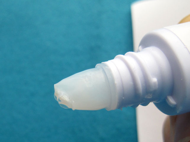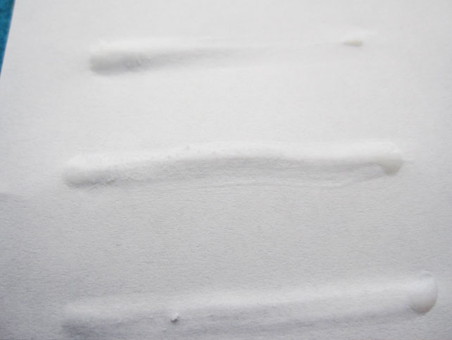 本体をギュッと押すと、のりが出てきます。このギザギザでうまく乗せやすい感じ。