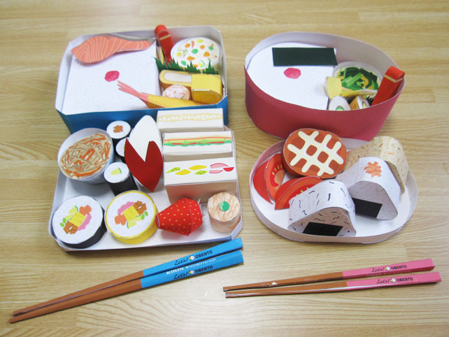 私が上で作成した「お弁当」と「キッチンツール」の型紙は、坂啓典さんと言う方が原形を作ったのですが、その方が「ドットライナーでペーパークラフト作成」体験をしていたのでまあきっと不可能ではないだろうと…